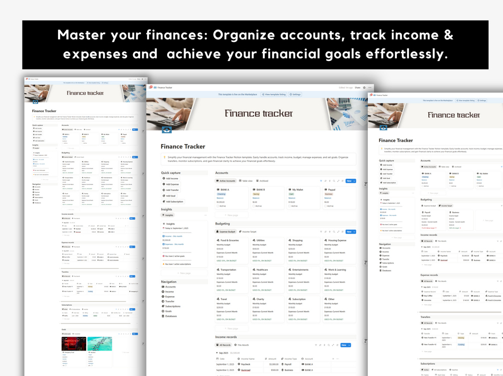 Tired of complex spreadsheets and scattered financial information? The Finance Tracker is a straightforward Notion template designed to give you a clear, centralized view of your money. It's the perfect tool for anyone who wants to take control of their financial journey without the headache.