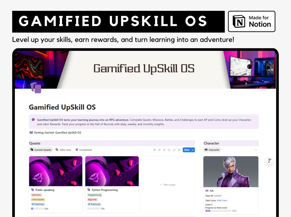 Gamified UpSkill OS - Notion template