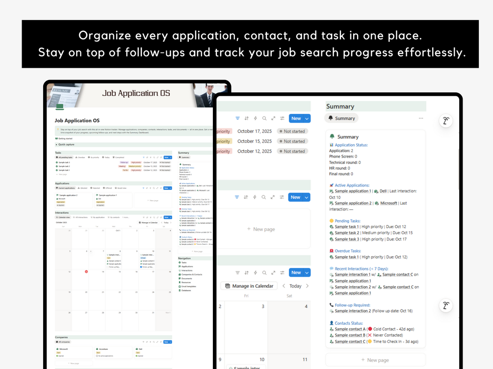With Job Application Tracker OS, your job search becomes organized, proactive, and stress-free — giving you the clarity and control to land your next role faster.